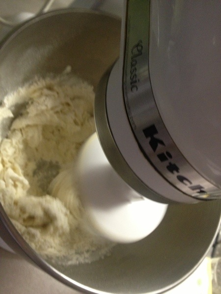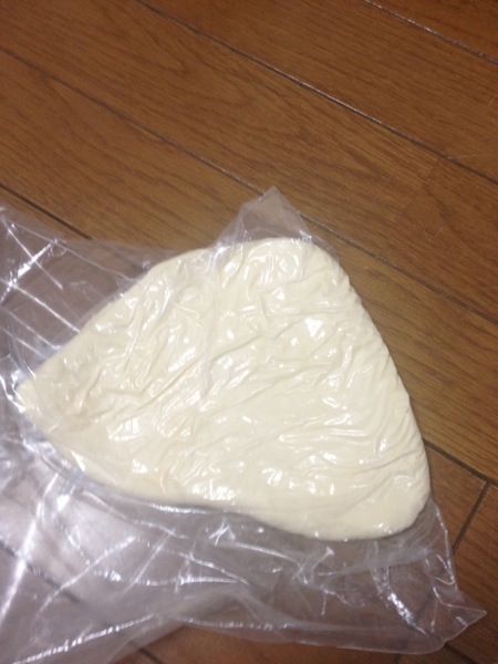 ある程度まとまってきたら、ジップロックに入れて、深夜番組を見ながら、踏み踏み。白い。かなり生地がべたついている。水分が多めに感じる。