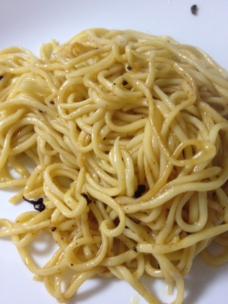ペペロンチーノにしたほうは、片栗粉の味がものすごく出てしまいます。パンの味。パンにオリーブオイルつけて食べているみたいだ!