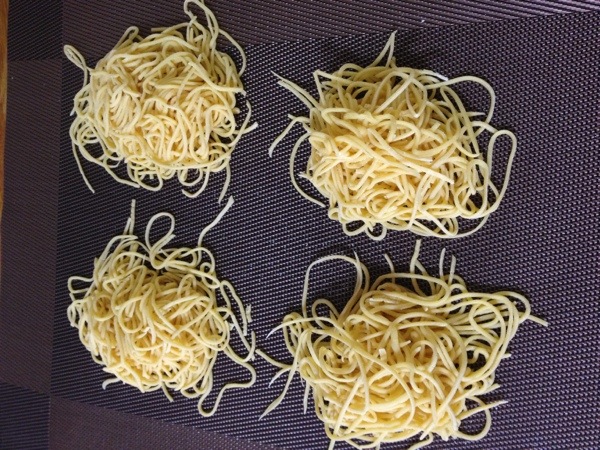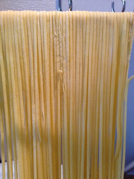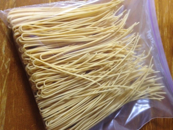 茹で時間2分。炒め時間15秒。今日の乾燥時間(約2時間)ではこれでは茹ですぎだった。